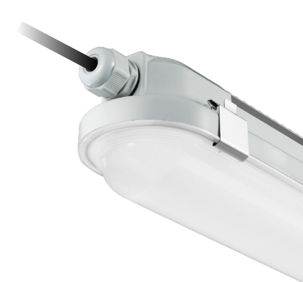 Work HE / PS er en slank utenpåliggende armaturserie med justerbar Wattstyrke. Armaturene er meget lyssterke og energieffektive, og passer perfekt i garasjeanlegg. Den har en buet overflate, hvor skjermen gir et bredt lysbilde. Meget montasjevennlig, hvor det er mulighet for både åpen og lukket tilkobling. Gjennomgangstilkobling med push-terminal i begge ender gir rask installasjon.