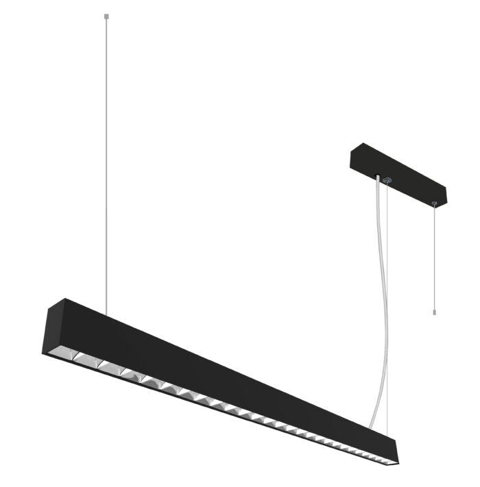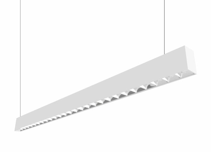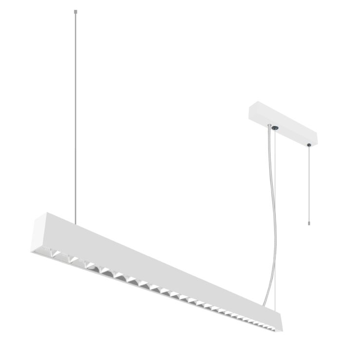 Elegant og slank pendel med opp- og nedlys. Rastere på undersiden sørger for lav blending (UGR<16) samtidig som den gir et godt arbeidslys. Passer perfekt på kontor og i offentlige miljøer, så vel som i private hjem.