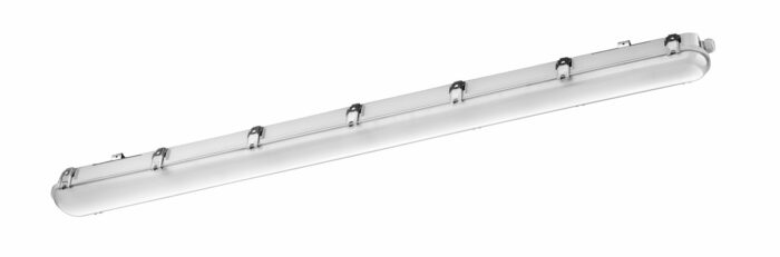 lengder og modeller. Armaturene er meget lyssterke og energieffektive, og passer perfekt i garasjeanlegg. Den har en buet overflate, hvor skjermen gir et bredt lysbilde.