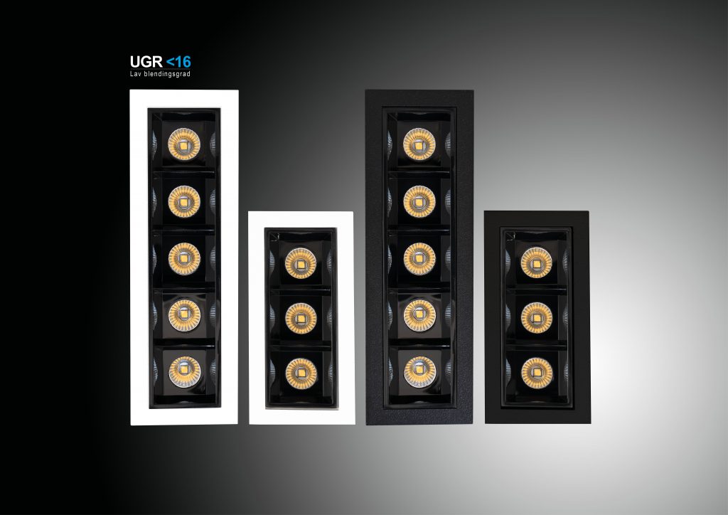 Med sin smale konstruksjon som består av individuelle optiske moduler, gir den jevn belysning og lav blending (UGR<16).