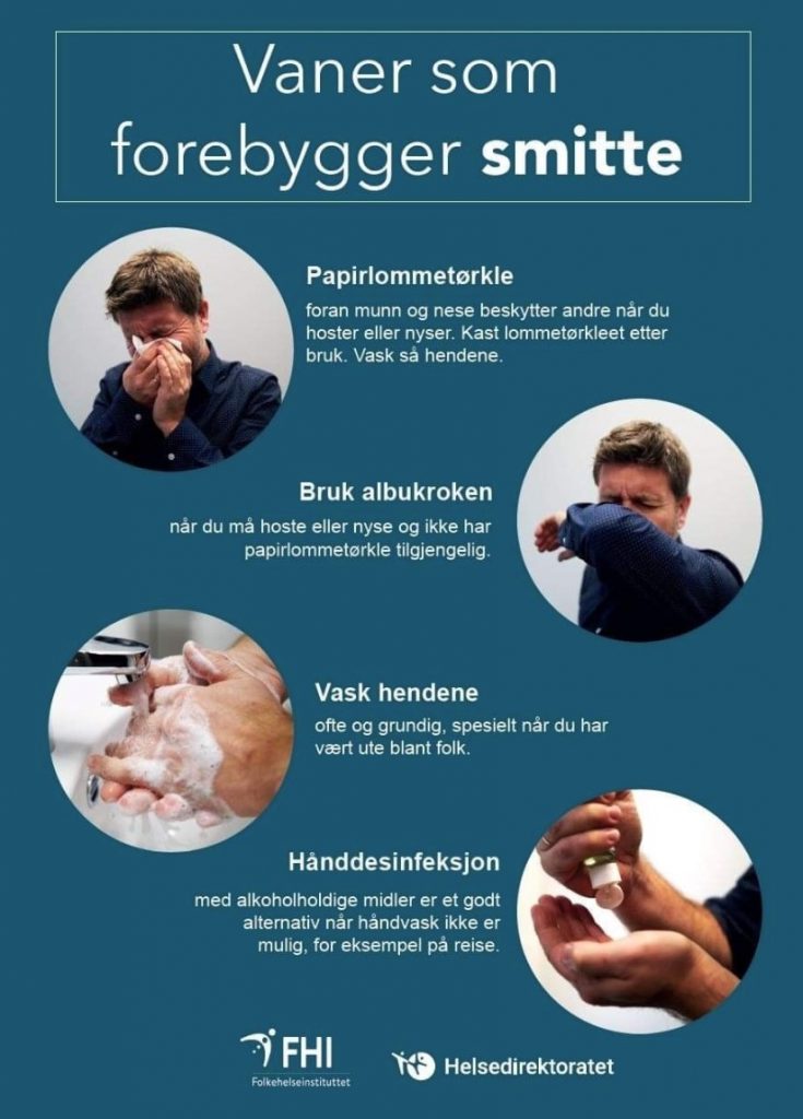 Vi oppfordrer alle til å følge alle råd som kommer fra myndighetene, slik vi raskest mulig kommer over i en normal hverdag igjen.