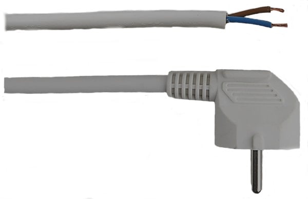 Kabel 2x0,75mm (200cm) u/jordet støpsel, hvit