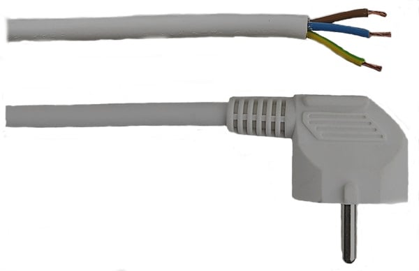 Kabel 3x0,75mm (200cm) m/jordet støpsel, hvit