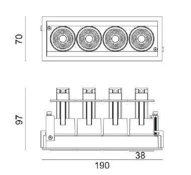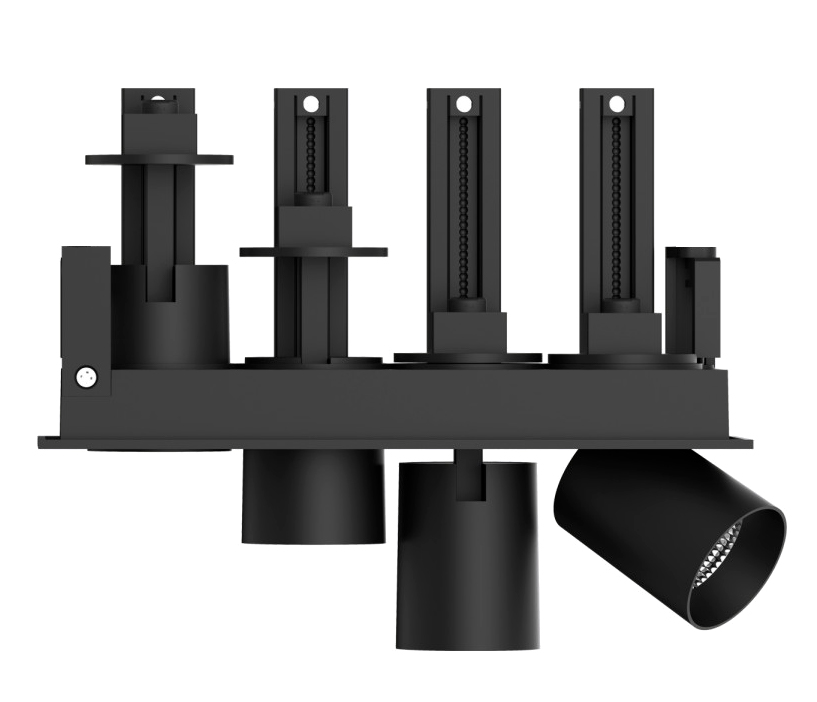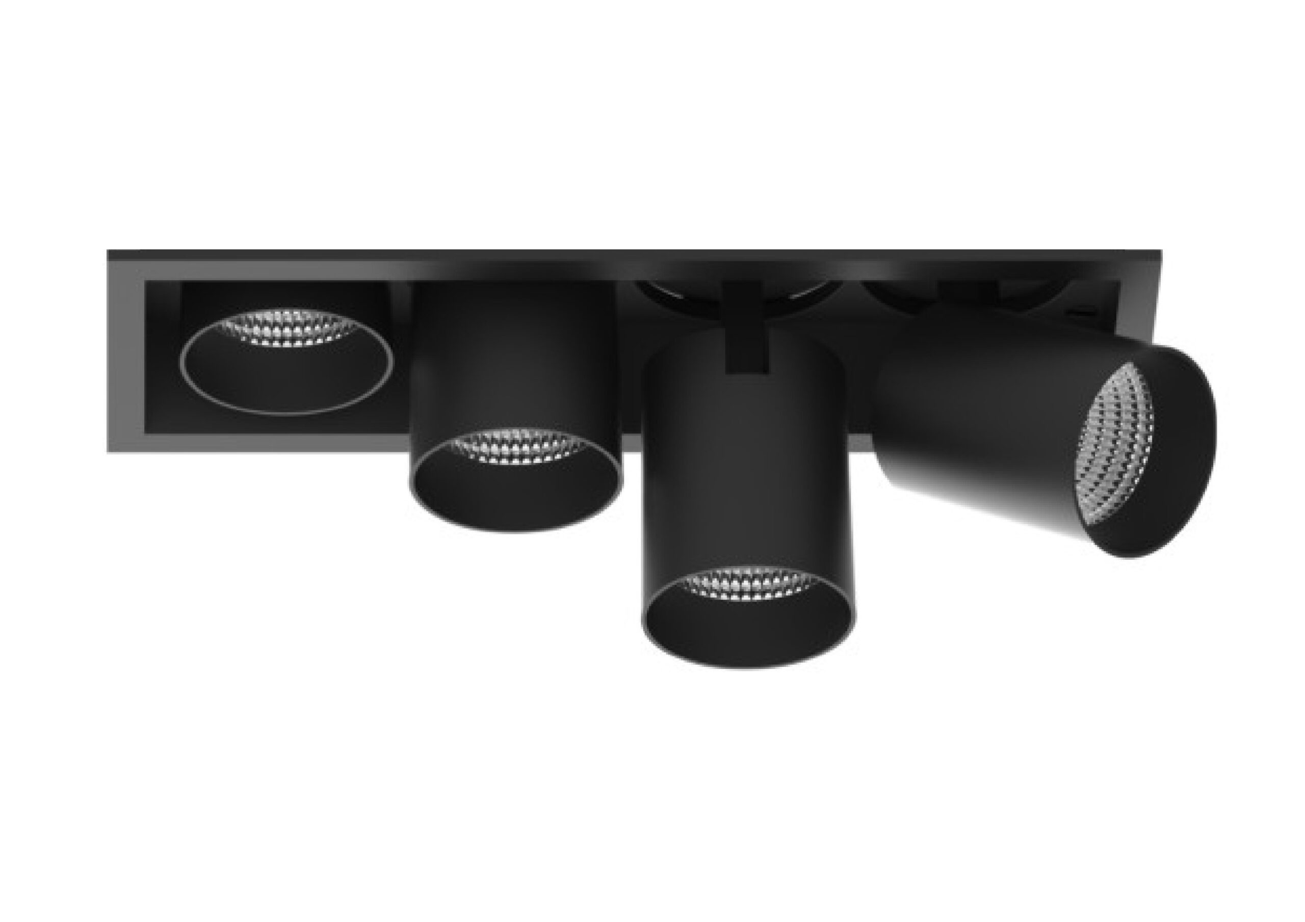 Multifunksjonell downlight designet med opptrekt lyskilde, som sørger for lav blending. Roterbar 355 º, tiltbar 80 º, opp og ned bevegelse på 50 mm