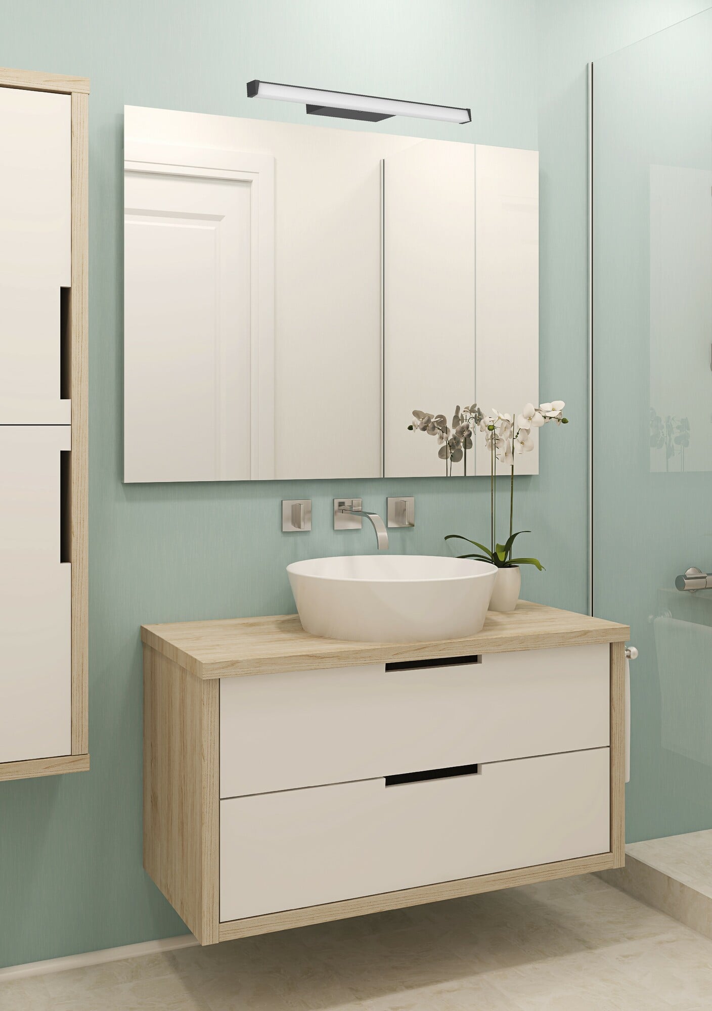 Bliz er en baderomsarmatur med rette og stramme linjer, som gir et bredt og godt lysbilde. Armaturen har en integrert bryter som gjør det mulig å endre fargetemperatur mellom 2700K og 3000K. Dette gjør armaturen meget fleksibel, hvor den kan benyttes i flere installasjoner. Dimbar fase avsnitt.