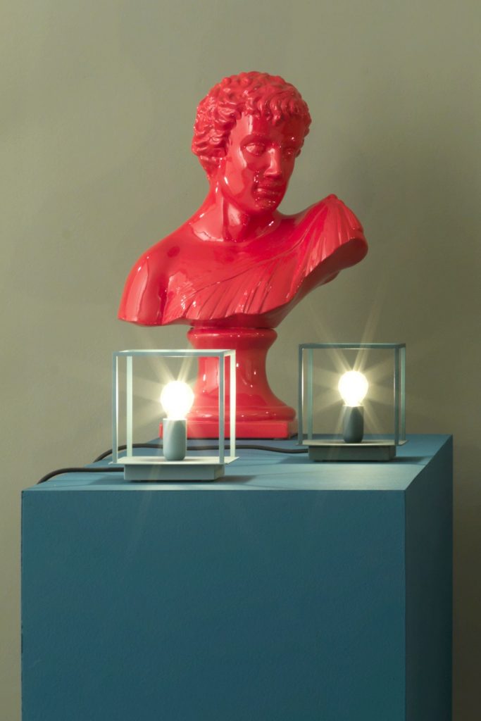 Box er en bordlampe som hyller den tradisjonelle lyspæren, og den gjør det ved å omslutte den i en metallramme som fremhever formene. Box-lampen kan tilpasses med alle de nye vintage-stil LED-pærene.