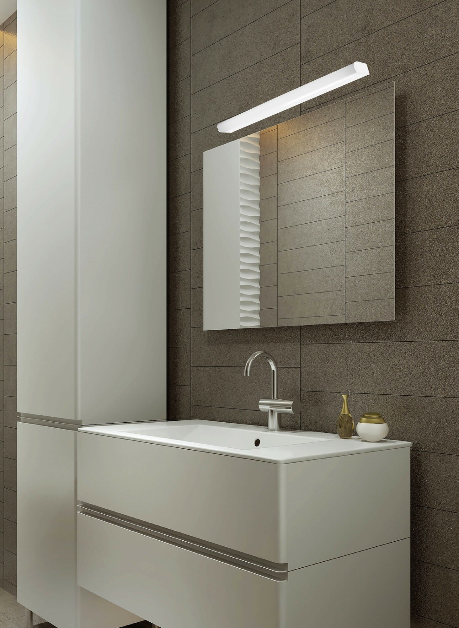 Klassisk og slank baderomsarmatur. Kan monteres både vann- og loddrett. Populært benyttet over eller ved siden av speil.