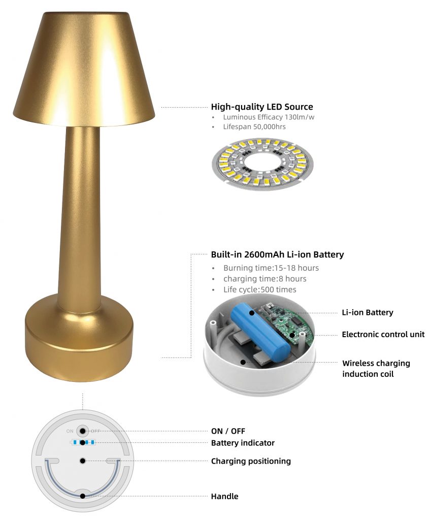 Cordless A, rechargeable table lamp, champagne gold