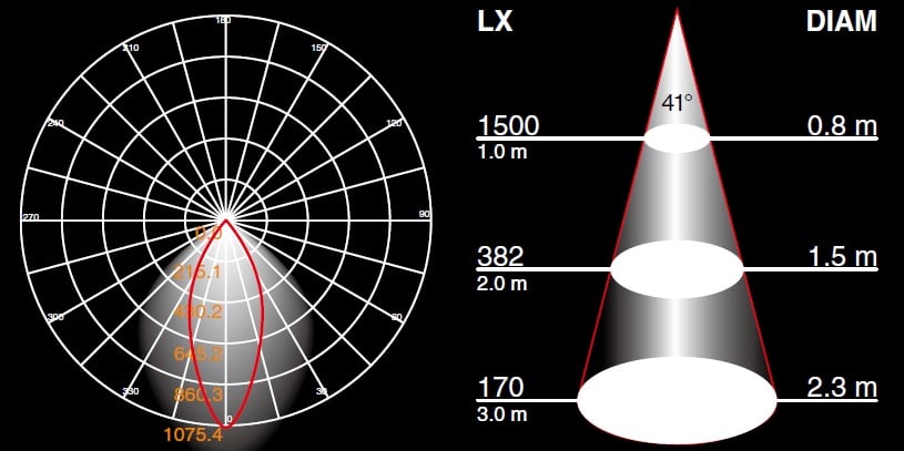 - 15W LED 41º, 934lm, 3000K, CRI>80