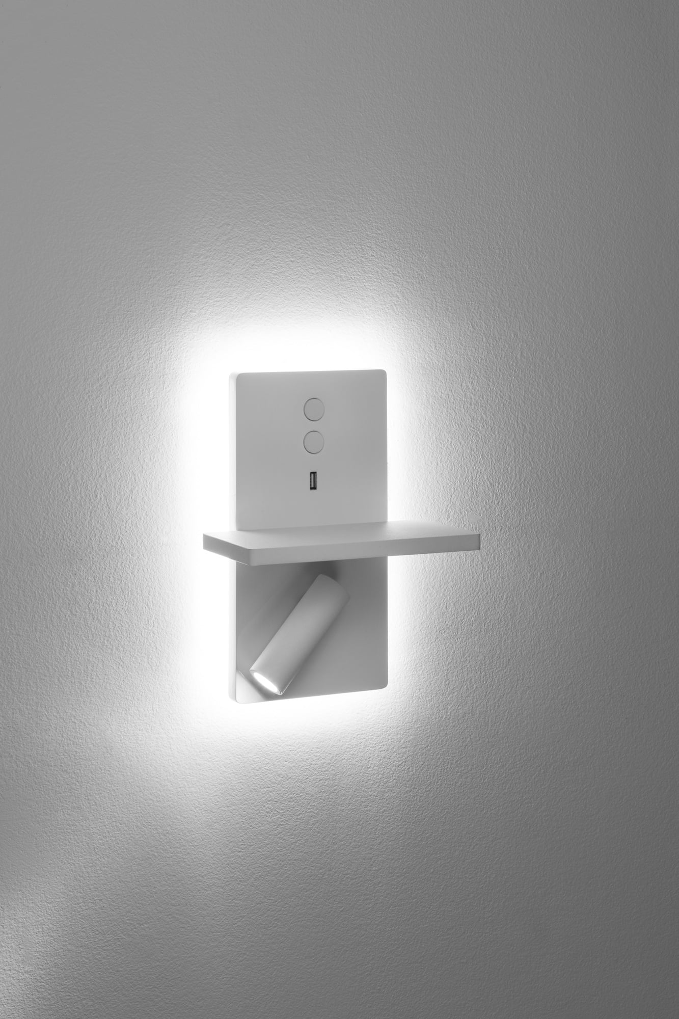 Elamp er en serie inspirert av grunnleggende geometriske former. Sammensetningen av forskjellige former skaper denne serien av multifunksjonelle armaturer som sikrer maksimal enkelhet, harmoni og integrering i rommet. Som med mobiltelefoner inkluderer den USB i alle versjoner, og bordlampen har trådløs ladeteknologi.