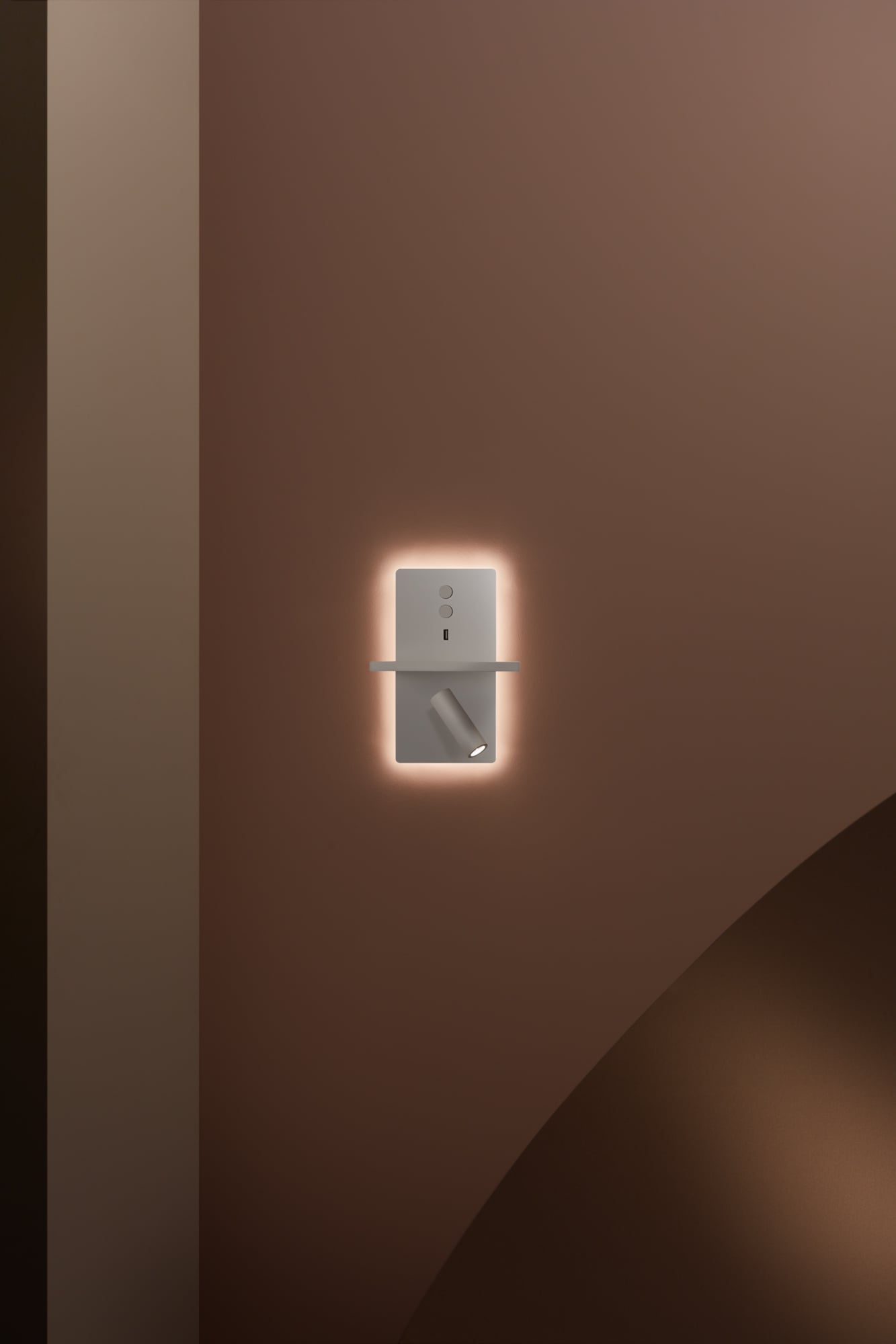 Individuelt leselys og baklys, hvor begge har av/på-knapp. Populært benyttet som nattbordslampe.