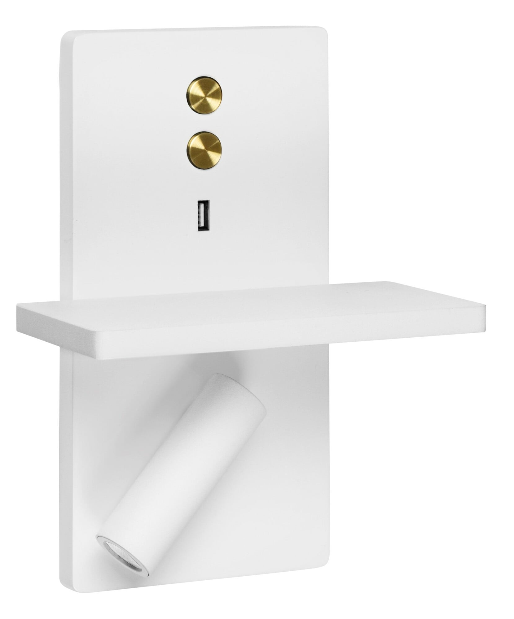 ELAMP Wall fixture, white/gold (2A/5V DC USB) (non-dimmable)