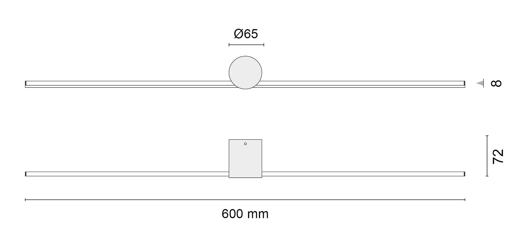 Den andre modellen retter lyset mot veggen og skaper et indirekte lys. Kommer i lengden 60cm og i fargen sort. Dimbar fase avsnitt.