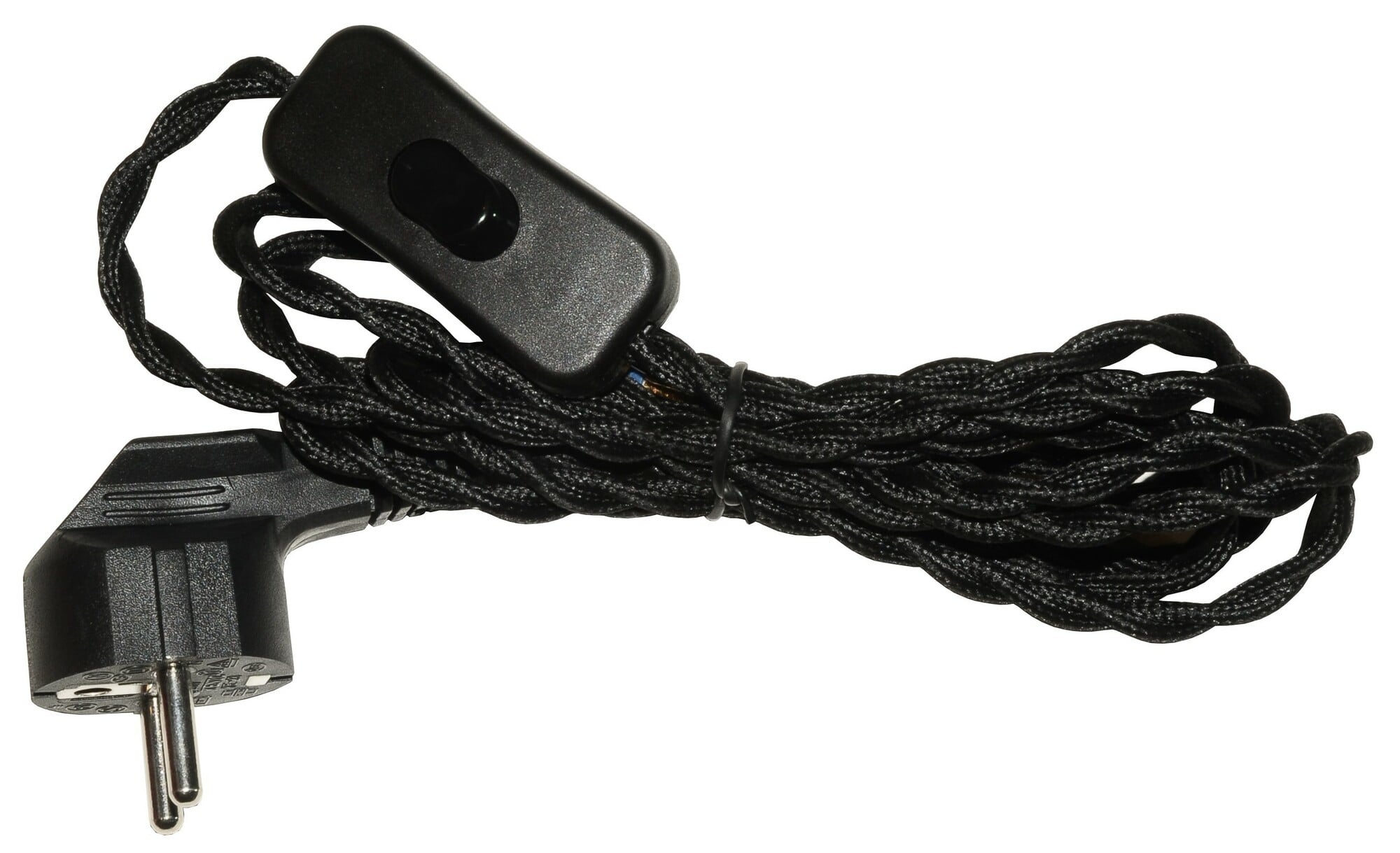 Fabric cable twisted, black/VDE plug & switch, black