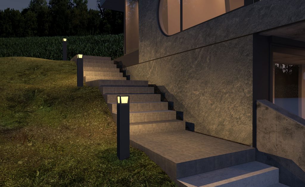 Armaturen gir et bredt lysbildet, hvor den lyser til alle sider og opp. Den minste stolpen anbefales å montere på en forhøyning, f. eks. portstolpe. Finnes også som tak- og vegglampe.