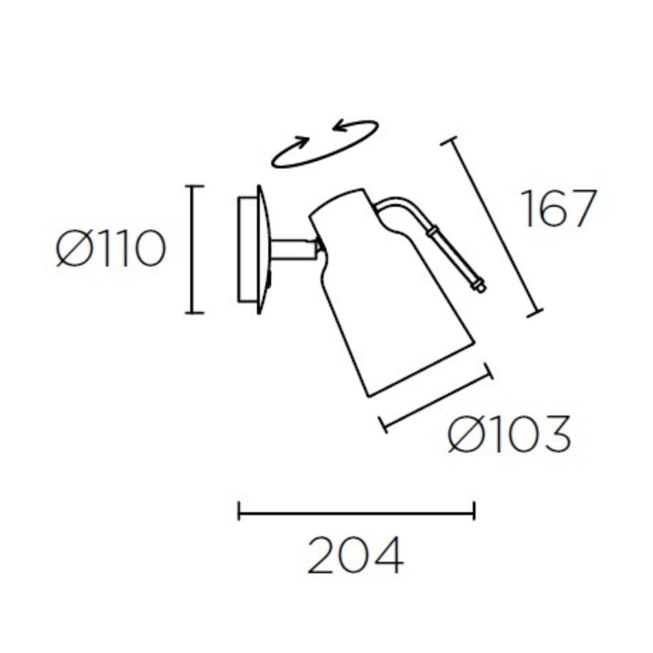 Dekorativ vegglampe med av/på-bryter. Tilhører en større produktfamilie. Populært benyttet som nattbordslampe.