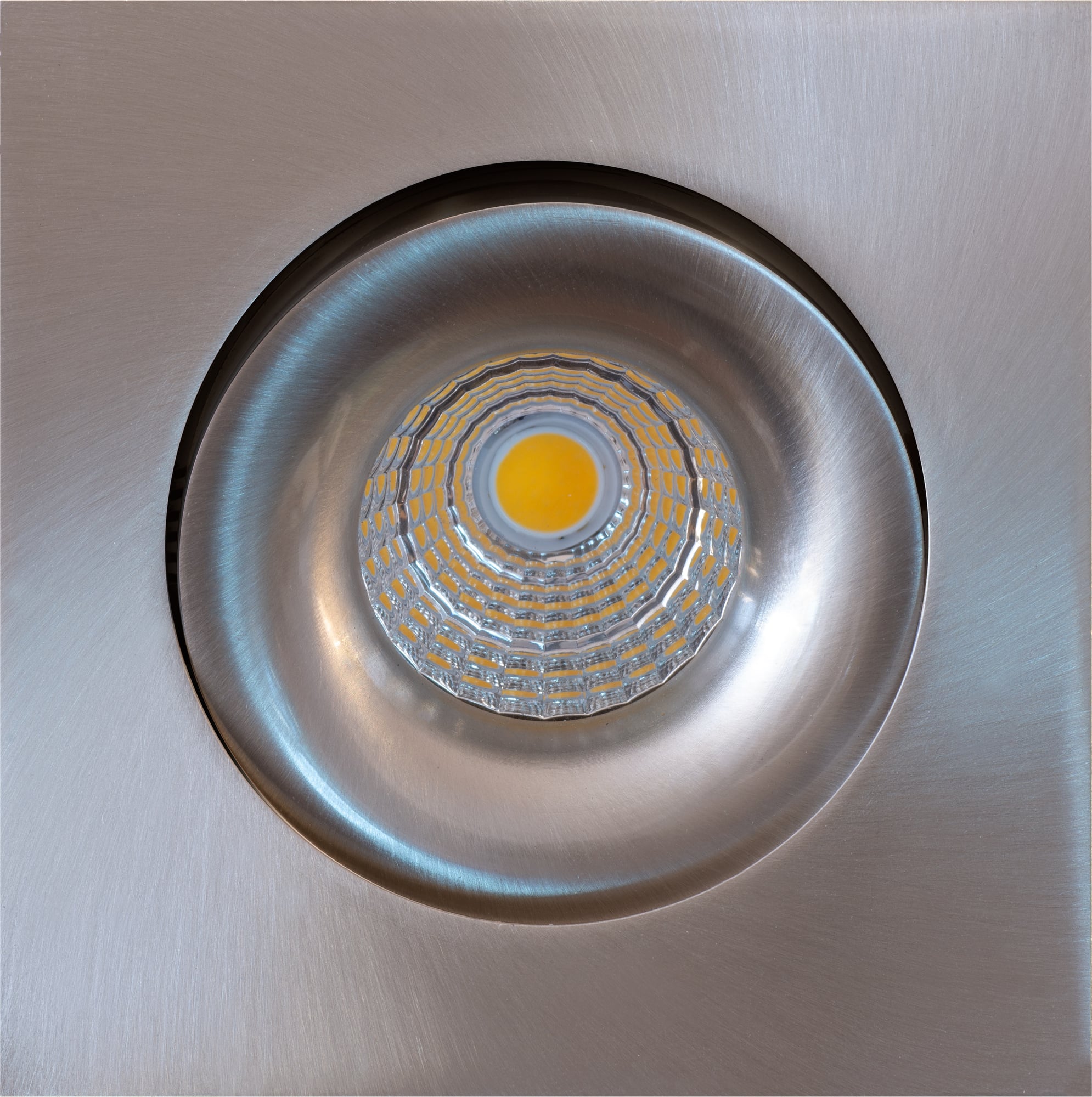 Stilren downlight i firkantet design og i fargen satin. Leveres komplett med fase avsnitt dimbar driver.