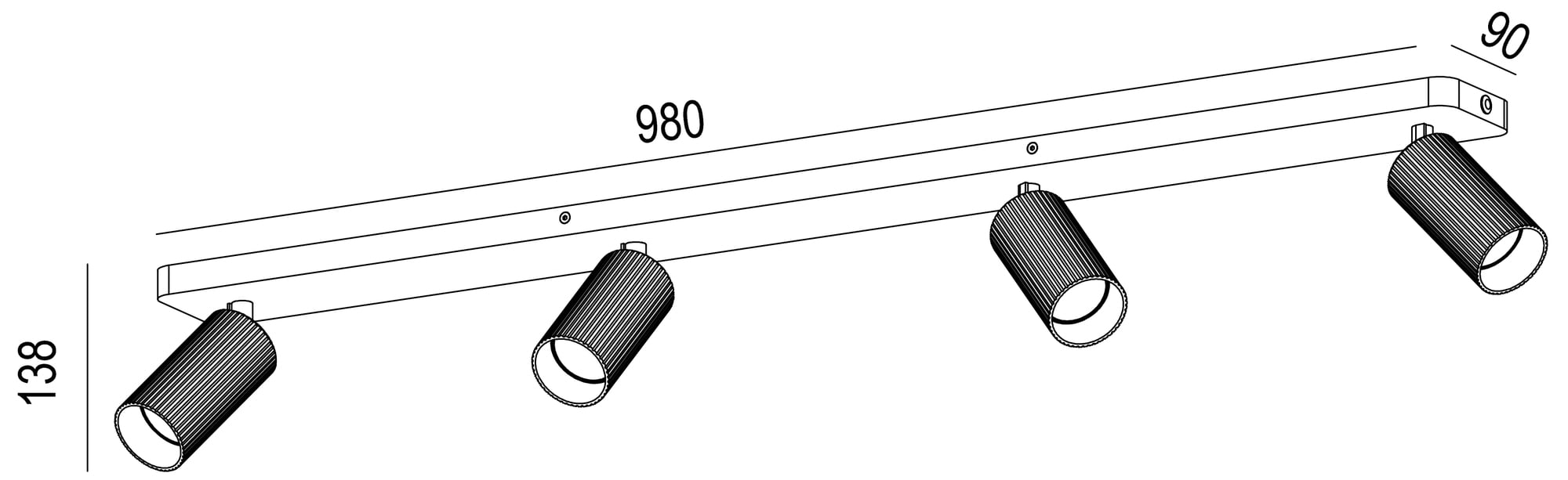 Grooves K4 er en langstrakt taklampe på hele 98cm, med fire spothoder som kan tiltes og roteres.