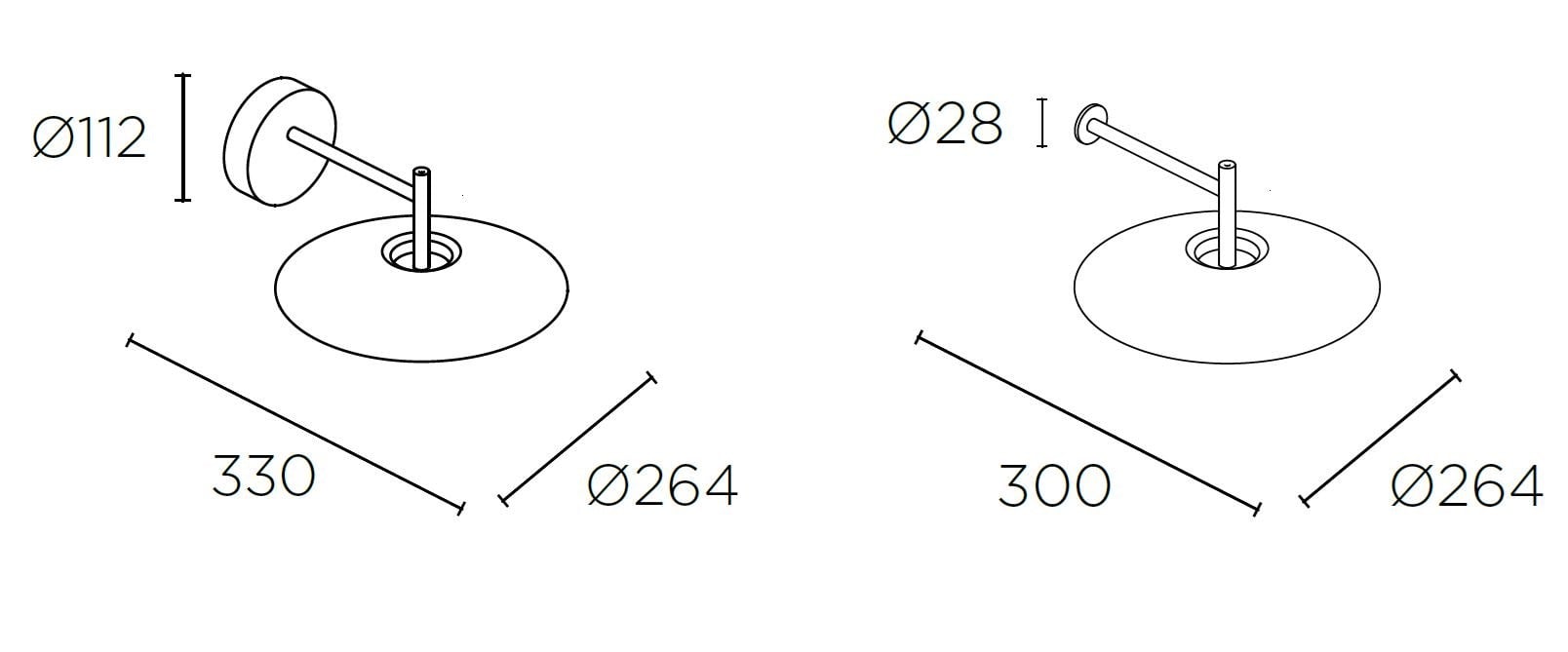 Dekorativ vegglampe som kan monters på 4 ulike måter