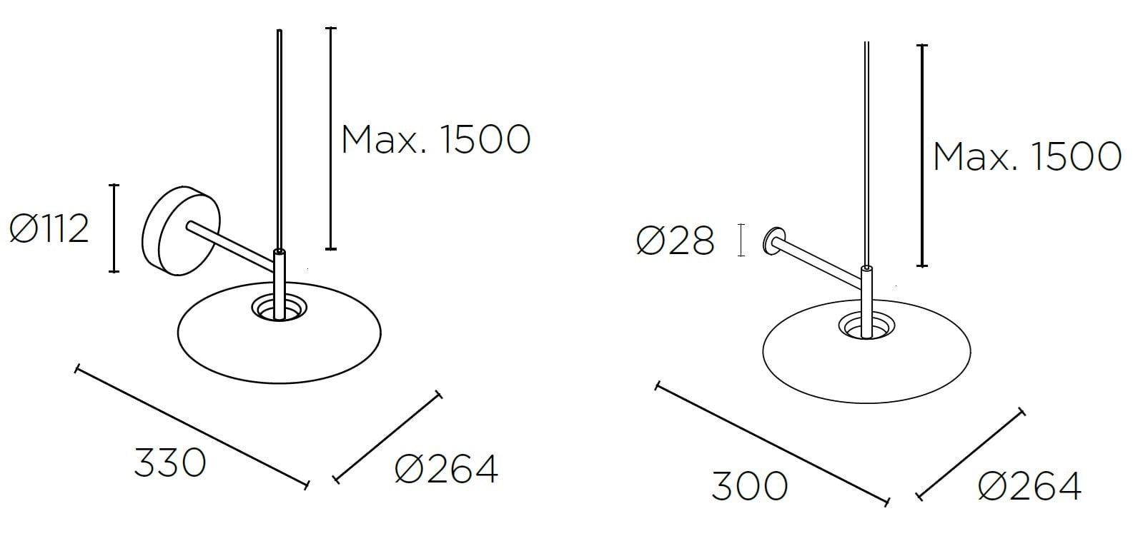 - Utenpåliggende med wire fra tak (ikke strømførende)