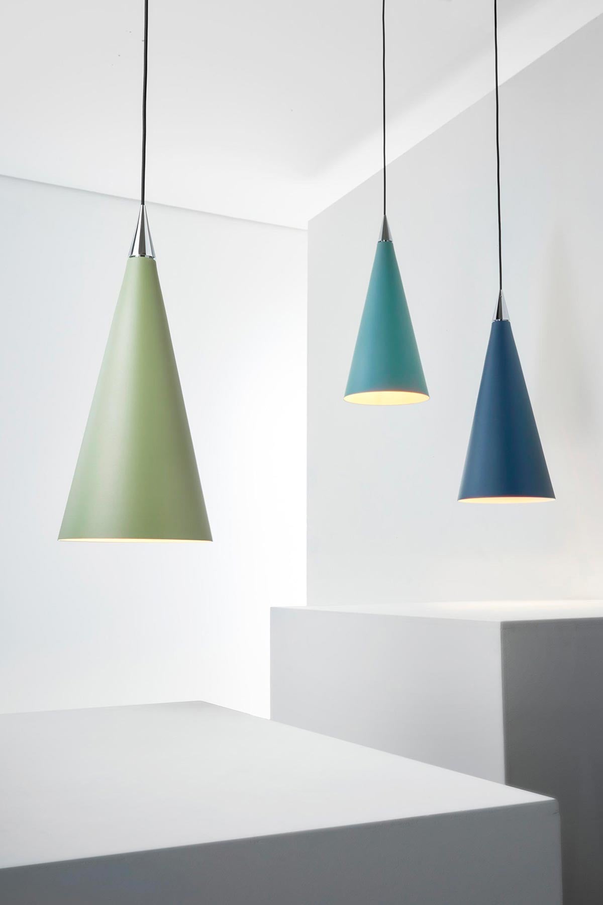 Jeena er en veldig fleksibel lampeserie preget av en særpreget kjegleformet nyanse. Serien inneholder forskjellige hengelamper med forskjellige diametre og former, samt en koordinerbar gulvlampe.