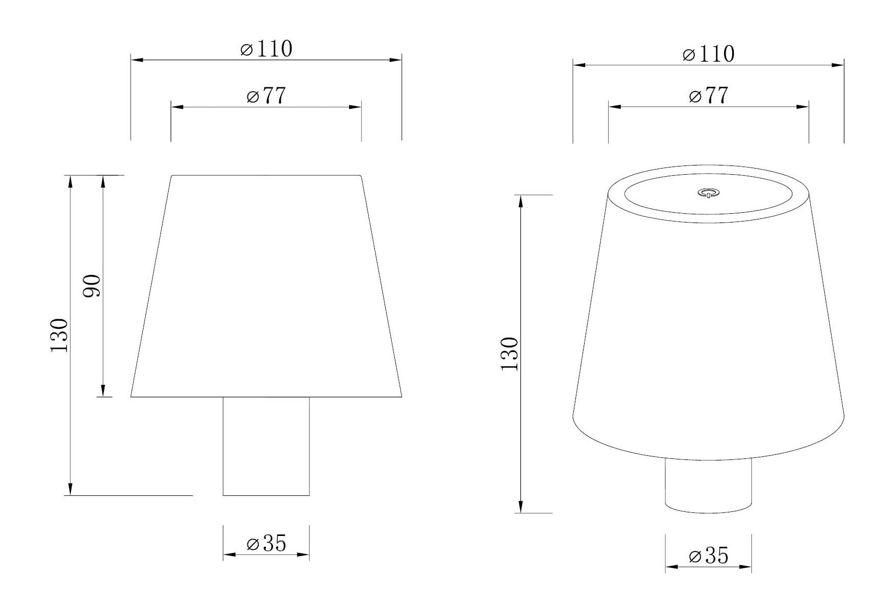 Oppladbar bordlampe. Av/på-touchknapp med dimmefunksjon (stepless). Velg mellom 2700K, 4350K og 6000K fargetemperatur.