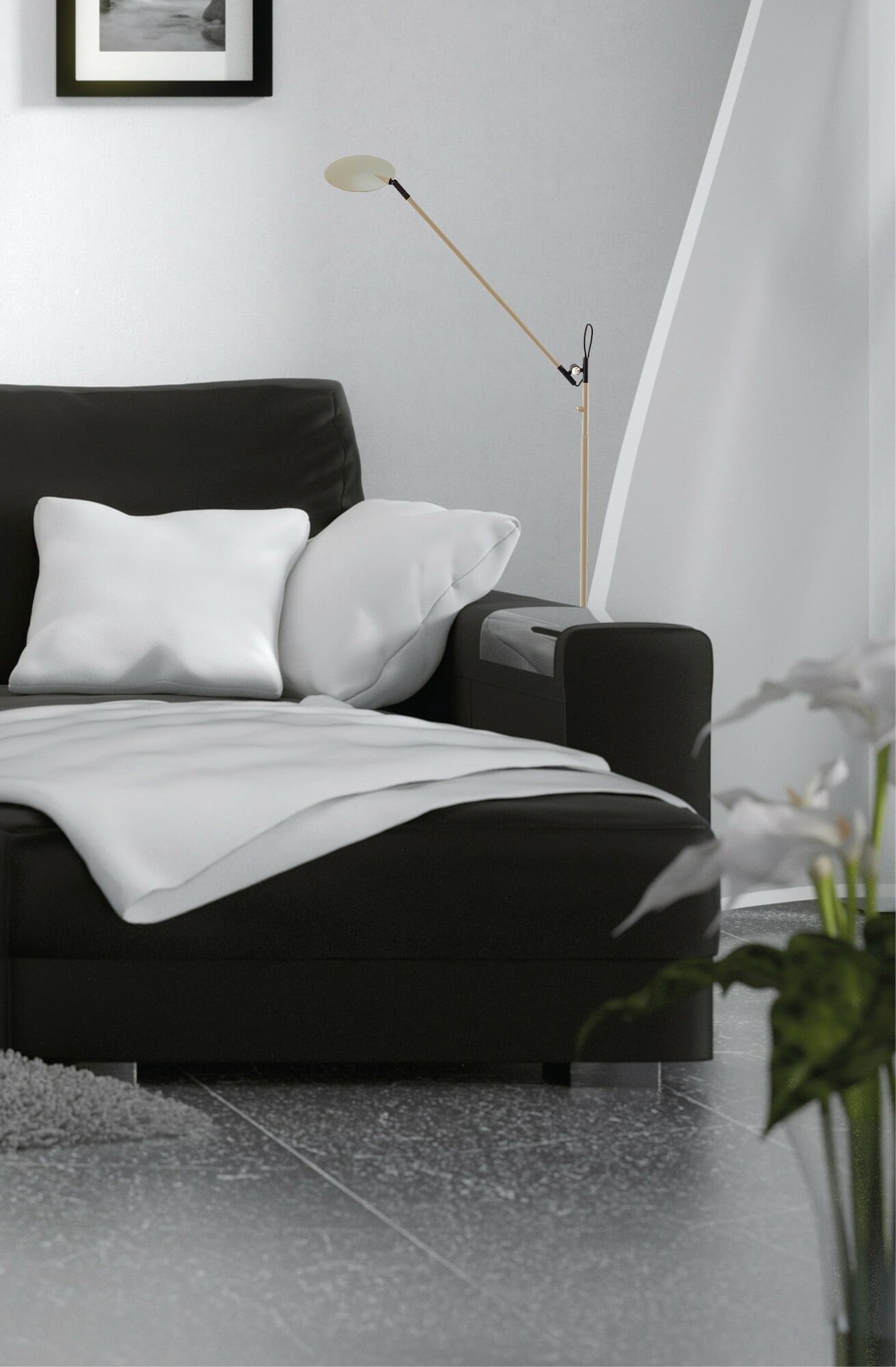 Slank og delikat gulvlampe med justerbare ledd. Touch-bryter med av/ på- og dimmefunksjon. Lampehodet er tilt- og roterbart. Armen er tiltbar. Med full spectrum CRI, gjengir lyset optimalt med fargegjengivelse av objektene den lyser på.