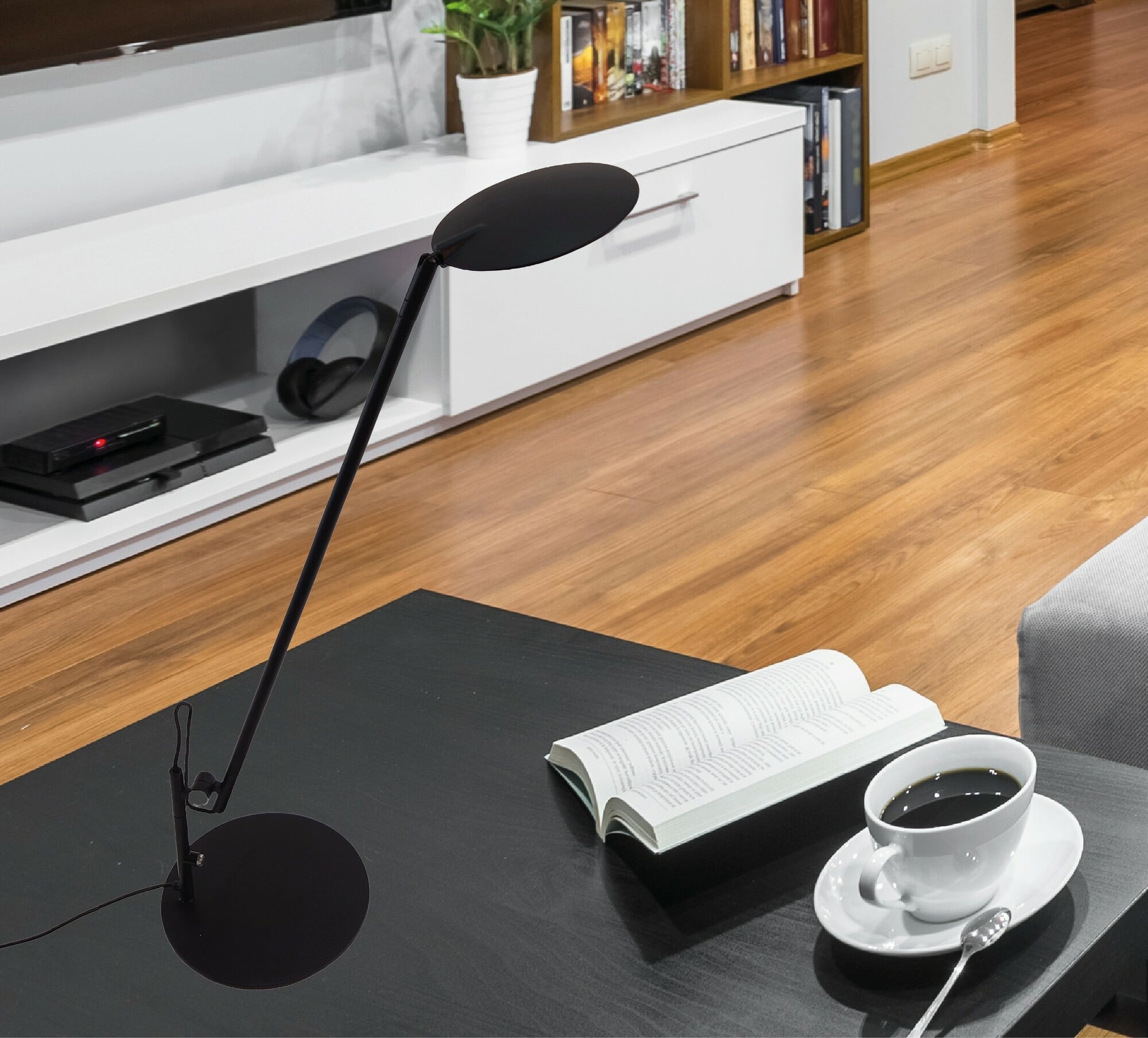 Slank og delikat bordlampe med justerbare ledd. Touch-bryter med av/på- og dimmefunksjon. Lampehodet er tilt- og roterbart. Armen er tiltbar. Med full spectrum CRI, gjengir lyset optimalt med fargegjengivelse av objektene den lyser på.