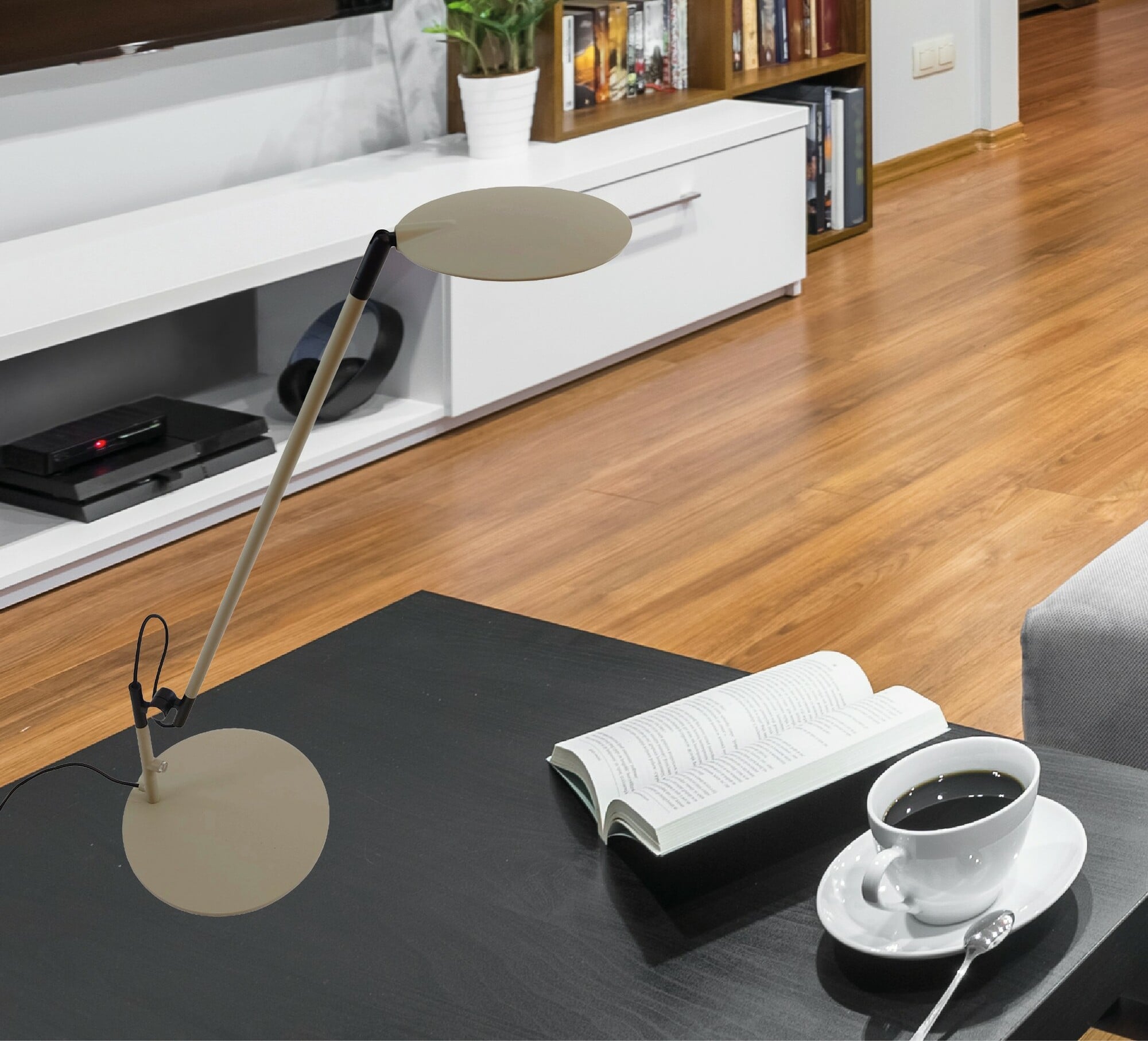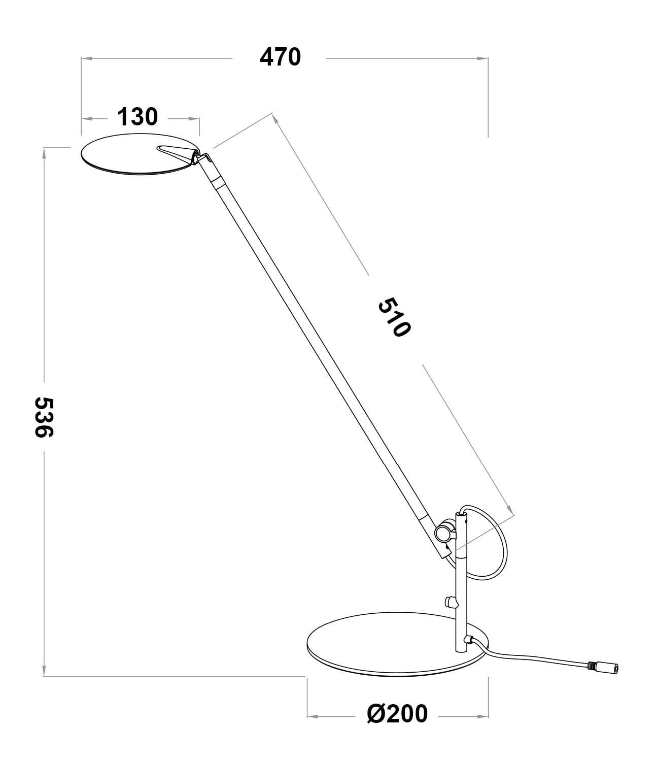 Slank og delikat bordlampe med justerbare ledd. Touch-bryter med av/på- og dimmefunksjon. Lampehodet er tilt- og roterbart. Armen er tiltbar. Med full spectrum CRI, gjengir lyset optimalt med fargegjengivelse av objektene den lyser på.