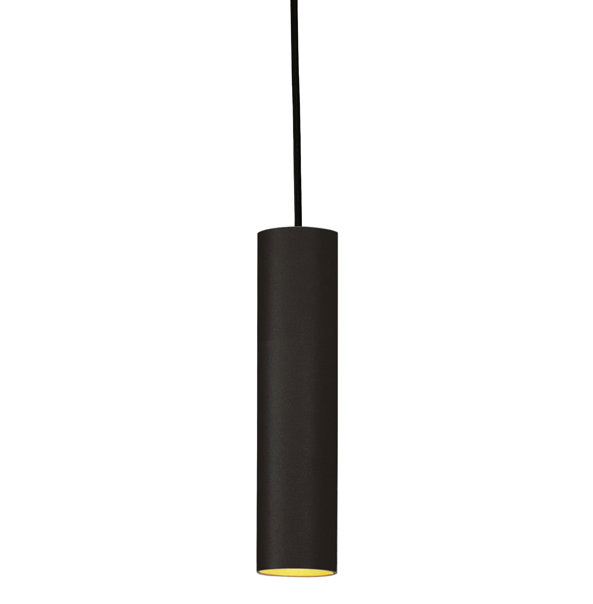 Cylinderformet pendel med GU10-sokkel. Leveres med gull cuff (innside). Ø60mm, H:270mm. Ledningslengde 120cm.