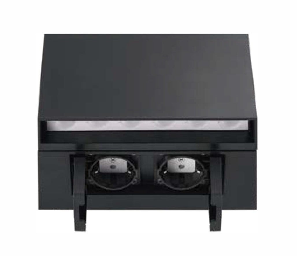 Begge modellene leveres med 2 x stikkontakt. Vippelokk beskytter stikkontaktene når de ikke er i bruk.