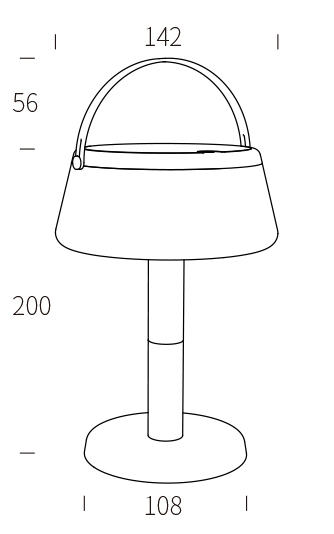 Leveres med stang og fot. Delene kan lagres i bunnen av lampen.