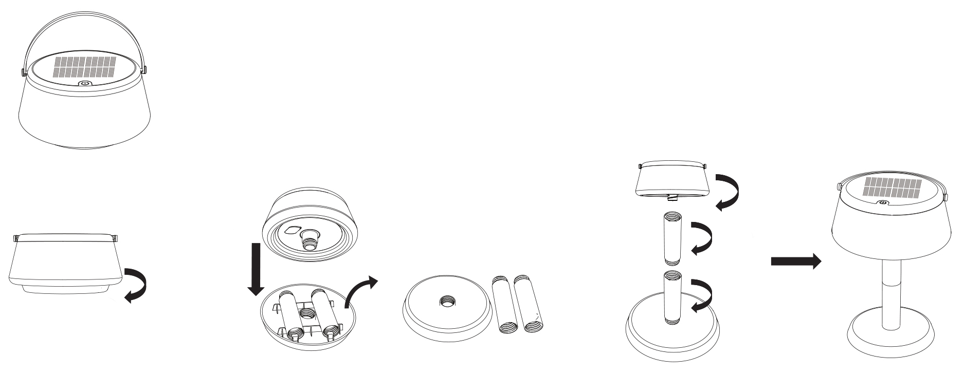 Oppladbar lampe med solcelle. Lad opp via USB eller solcelle. Av/på-touchknapp med dimmefunksjon. Kreativ bordlampe hvor man enkelt kan justere høyden. Hempen kan enkelt legges ned ved siden av skjermen. Leveres inkl. USB A til C ladekabel (1m).