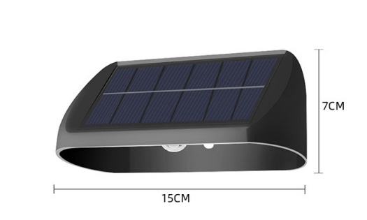 Oppladbar vegglampe med solcelle. Skruer seg automatisk på når det blir mørkt og automatisk av når det blir lyst. Lader i dagslys. Velg mellom to lysstyrker. Lyskilden gir et bredt lysbilde, hvor den lyser tydelig opp veggen og gir et kjegleformet lysbilde. Monteres enkelt til underlaget, med to festekroker som hektes over skruehodet.