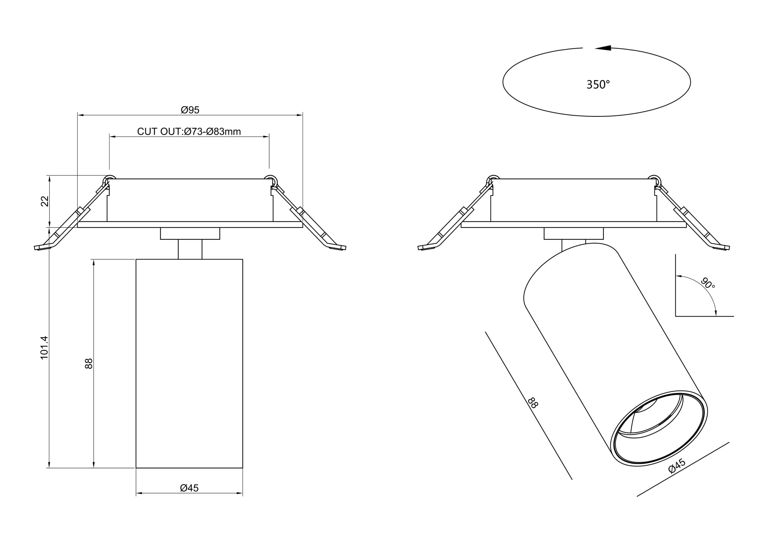 Spot D45 er en spotlight-serie i klassisk tubedesign, med en lengde på kun 88mm og diameter på Ø45mm. Alle modellene har integrert LED, med en fargetemperatur på 2700K. Lyskilden er trukket opp i tuben og ligger bak en linse, som sørger for lav blending (UGR<19) og god spredning (40⁰).