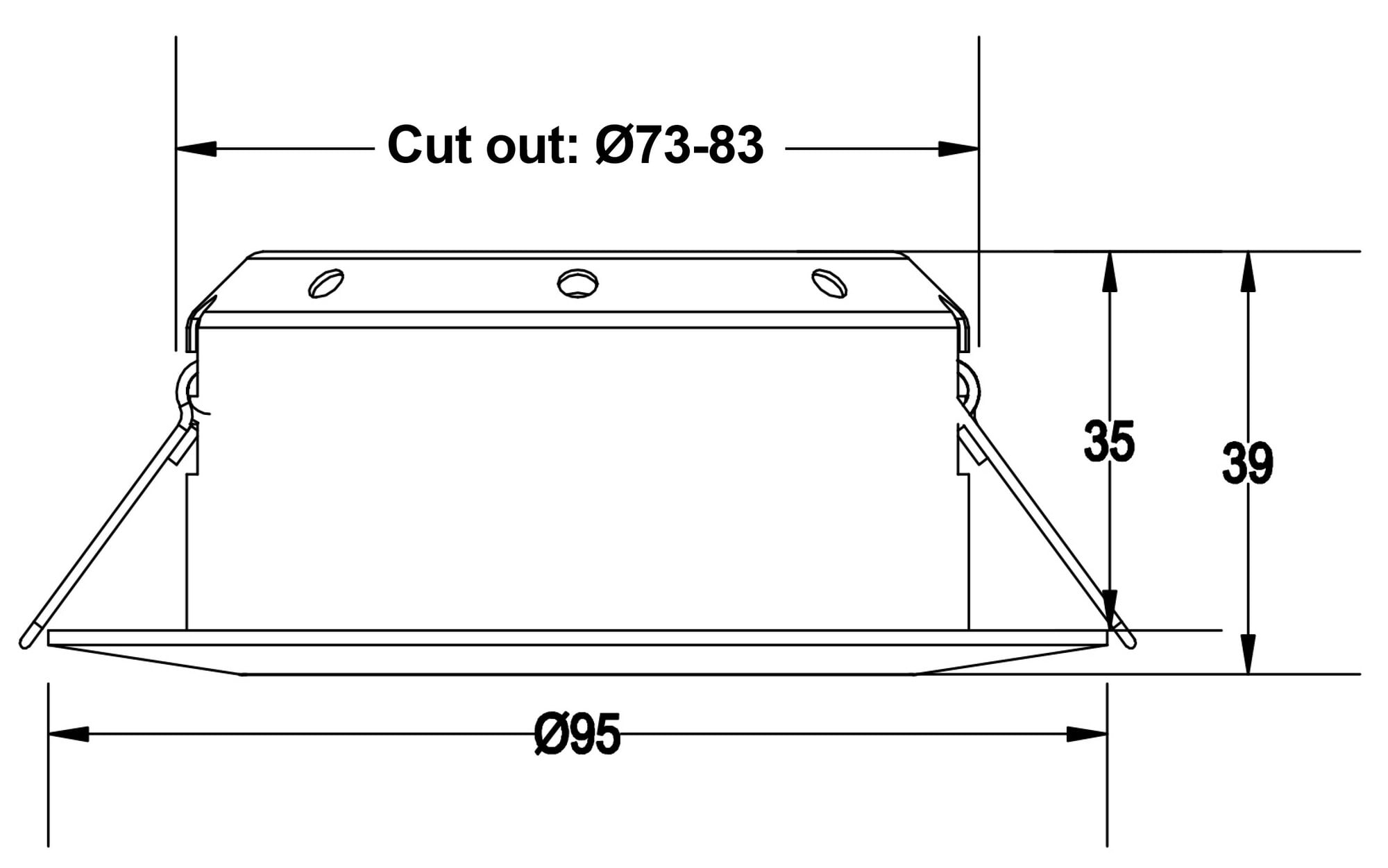 Meget lavtbyggende (kun 35mm), og kan benyttes i hullmål fra Ø73-83mm).