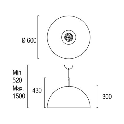 Umbrella Pendant 600mm, white/metallic grey