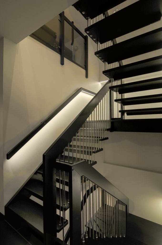 Led strip i raftkasse, 9,6W/m IP65, Utah downlights, Led strip i håndløper.