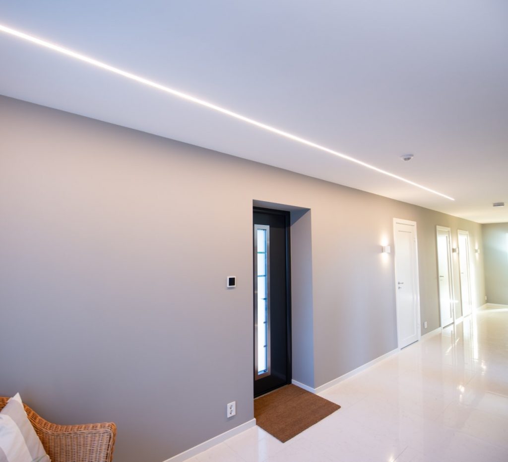 Flott løsning med LED strip og alu. profil innfelt i tak.