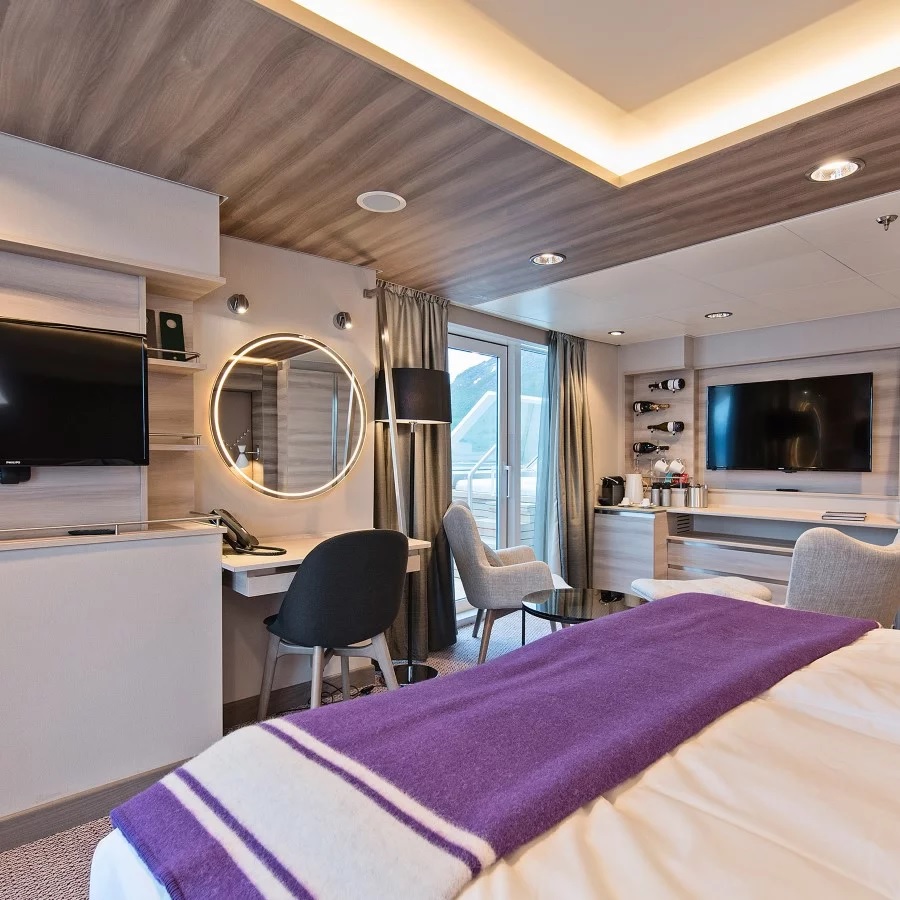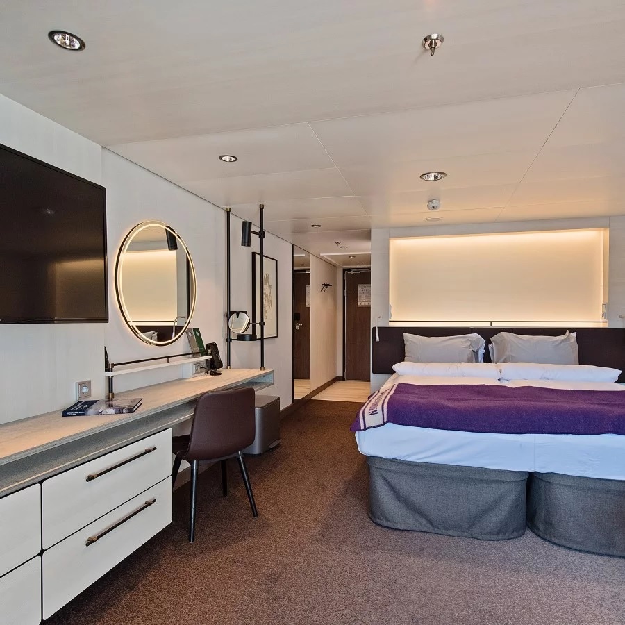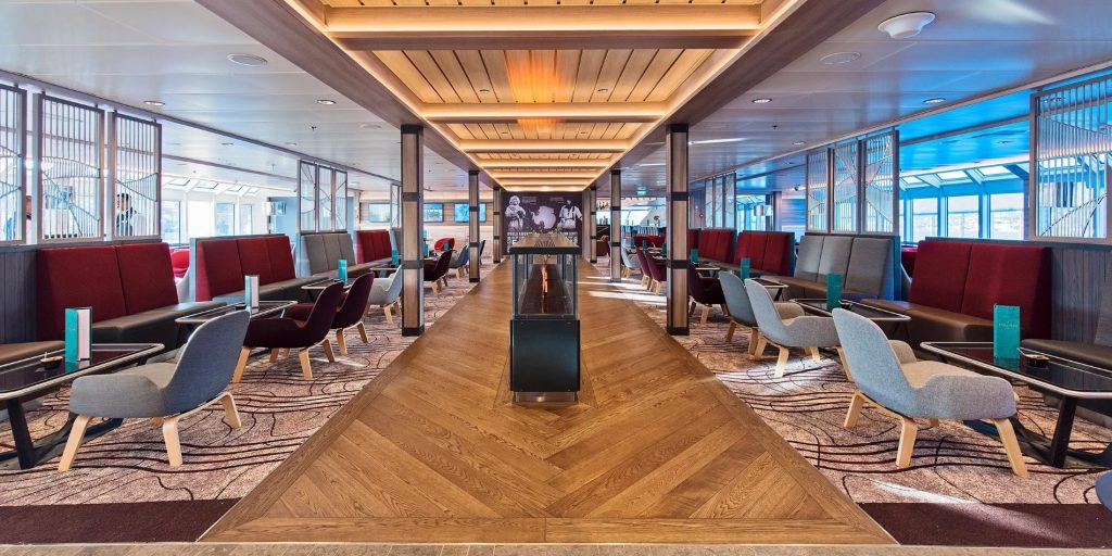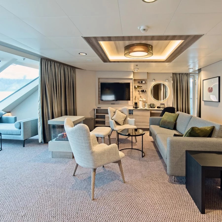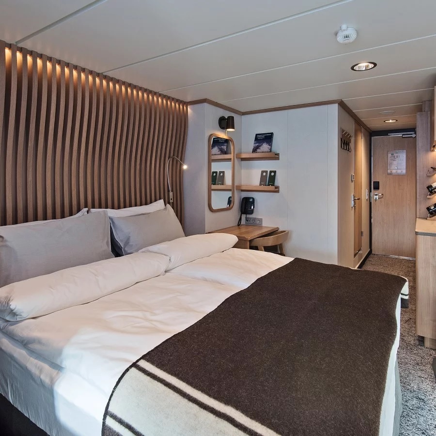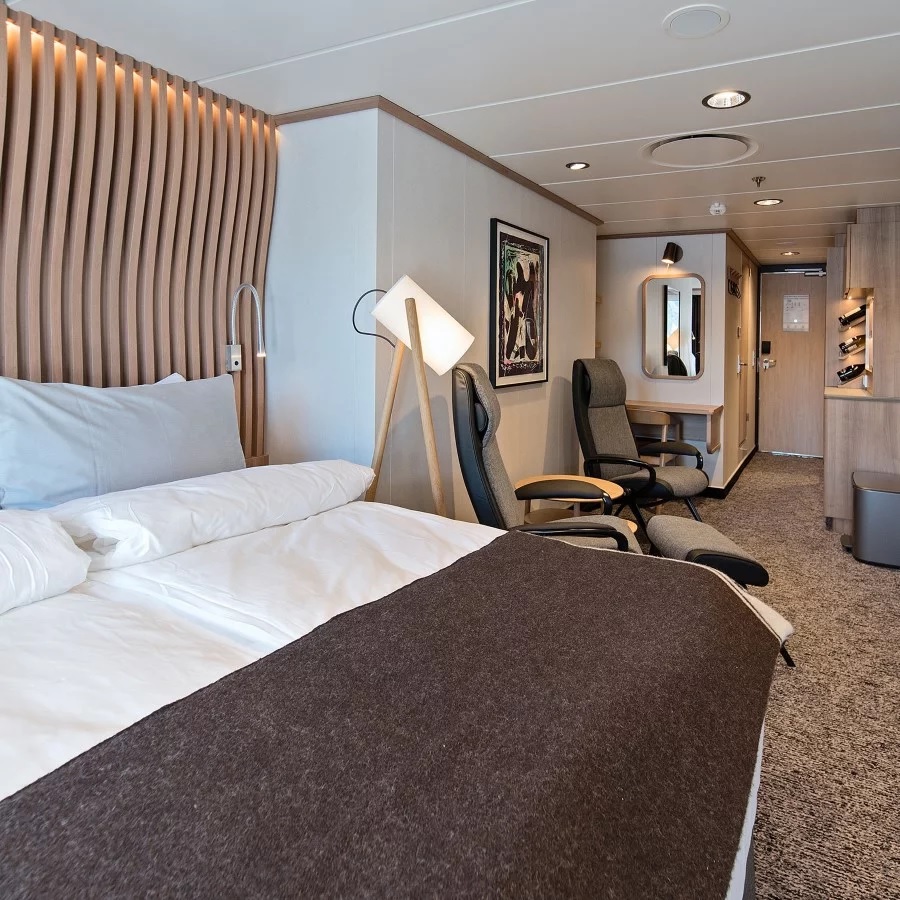 De fantastiske omgivelsene vi besøker blir reflektert i en vakker og komfortabel interiørdesign. Skandinavisk naturmateriale som granitt, eik, bjørk og ull vil bli brukt til å skape en avslappede og stilfulle lugarer og fellesområder. Alle lugarene er utvendige og halvparten har private balkonger. Suiter over skipets akter har utendørsboblebad med spektakulær utsikt.