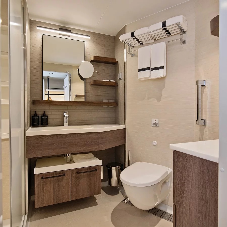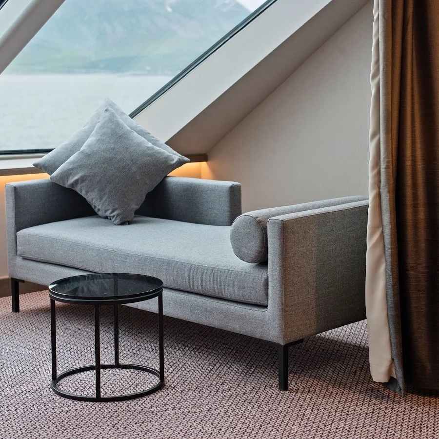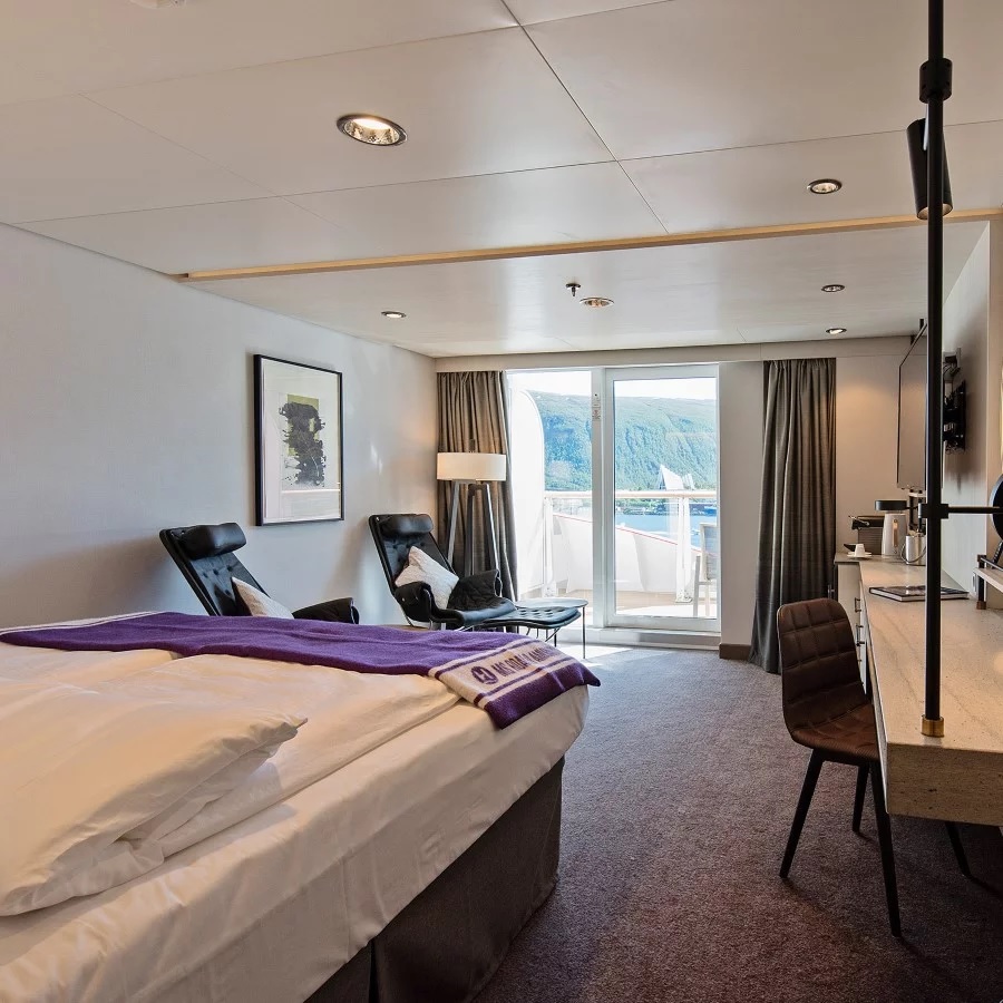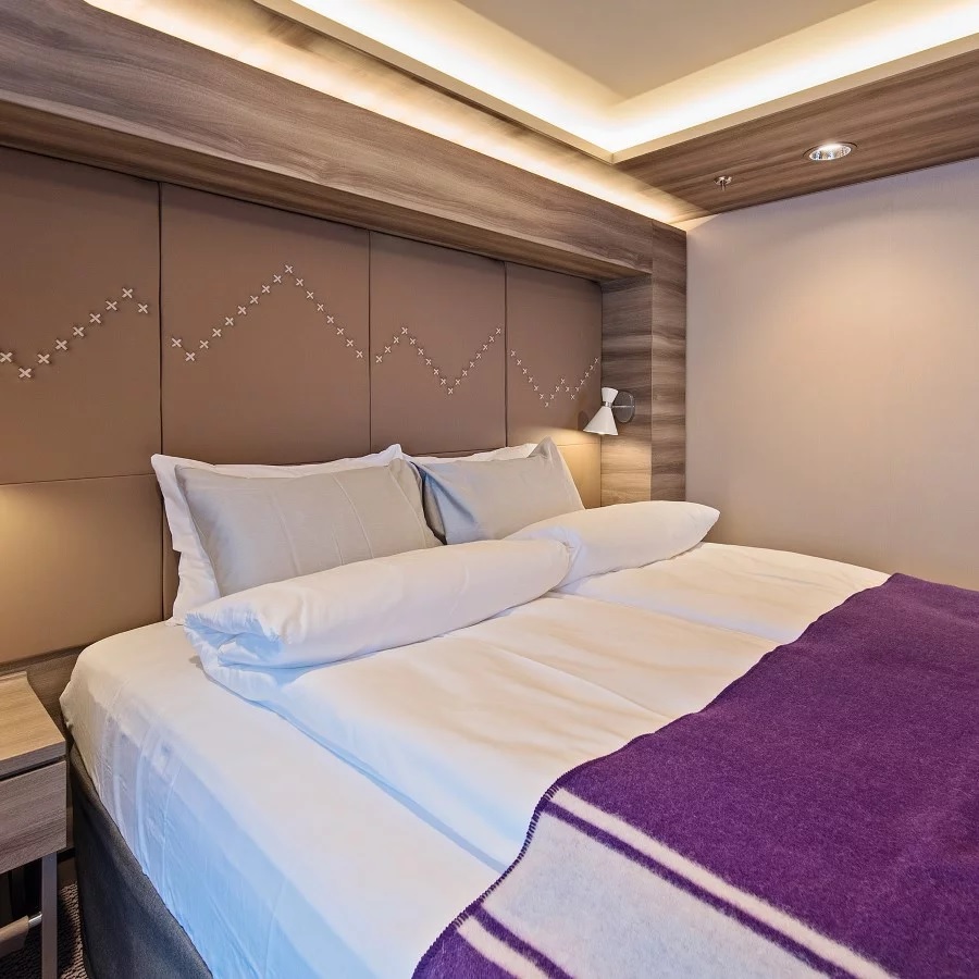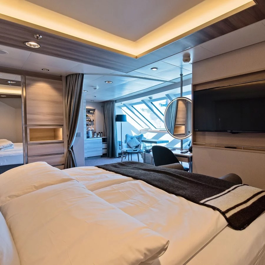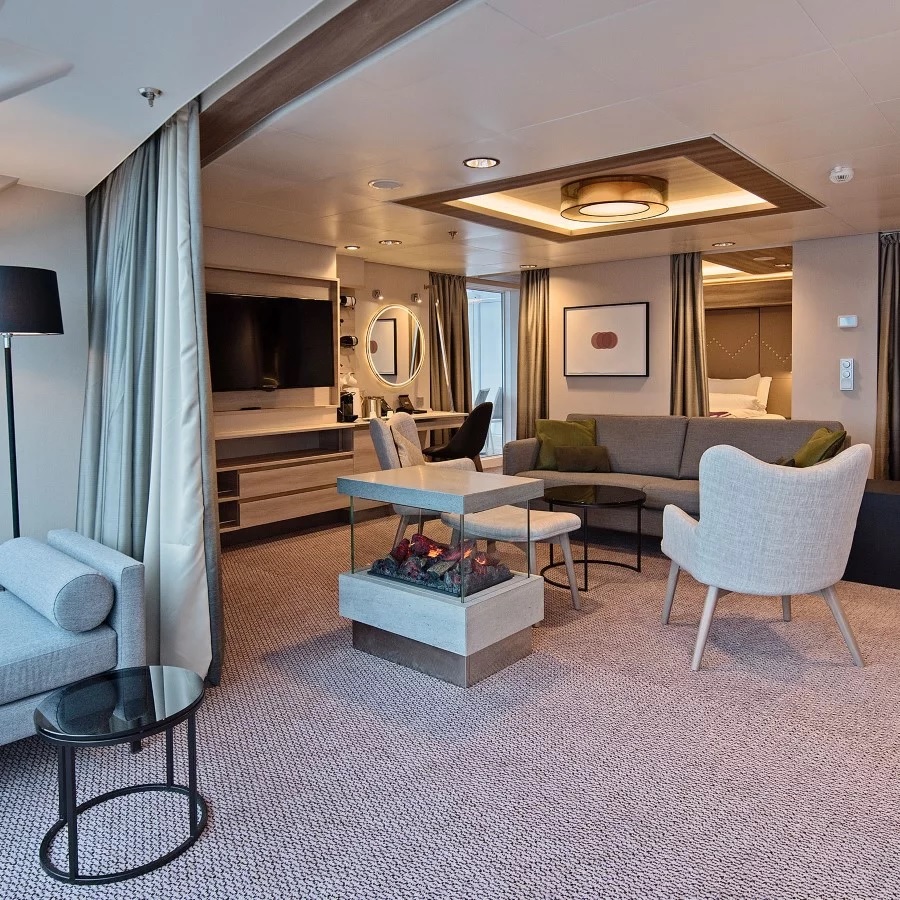 De fantastiske omgivelsene vi besøker blir reflektert i en vakker og komfortabel interiørdesign. Skandinavisk naturmateriale som granitt, eik, bjørk og ull vil bli brukt til å skape en avslappede og stilfulle lugarer og fellesområder. Alle lugarene er utvendige og halvparten har private balkonger. Suiter over skipets akter har utendørsboblebad med spektakulær utsikt.