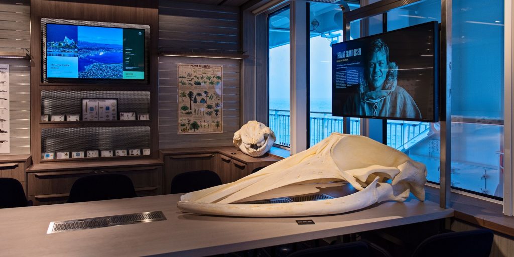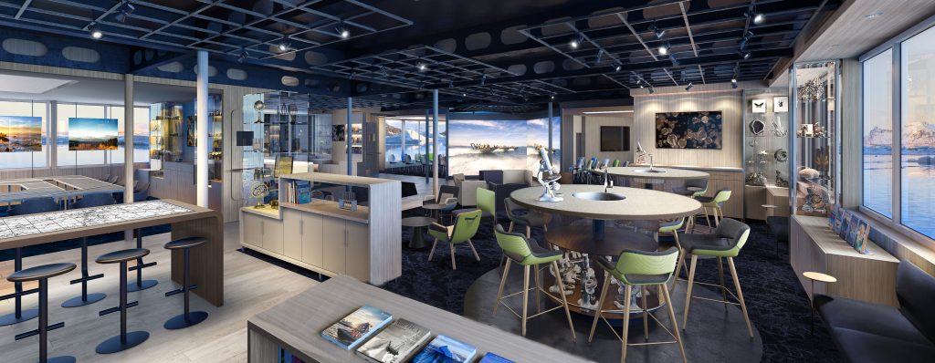 Kjernen i opplevelsen er Nansens Science Center, et sted hvor gjester og ekspedisjonsteamet møtes for å skape en dypere forståelse av områdene vi utforsker. Nansen Science Center vil også være ekspedisjonsteamets base.