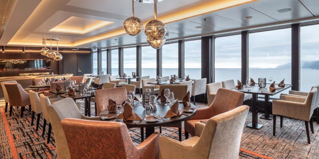 MS Fridtjof Nansens tre restauranter byr på fantastisk mat, med menyer som hentet fra våre nordiske mattradisjoner samt internasjonale retter med lokal inspirasjon. Nyt måltidene på Aune – hovedrestauranten, Fredheim – med internasjonalt kjøkken eller Lindstrøm – spesialrestauranten der du kan oppleve raffinert, moderne norsk og nordisk matlaging.