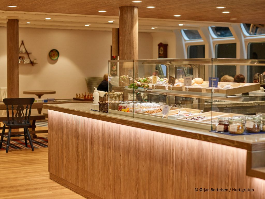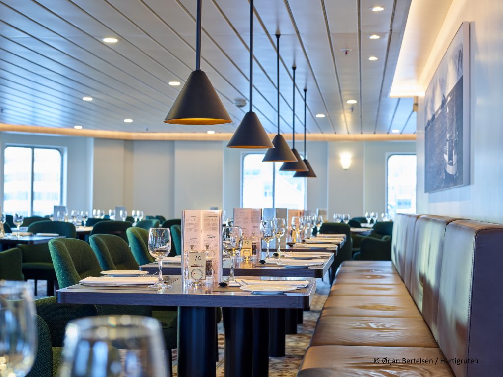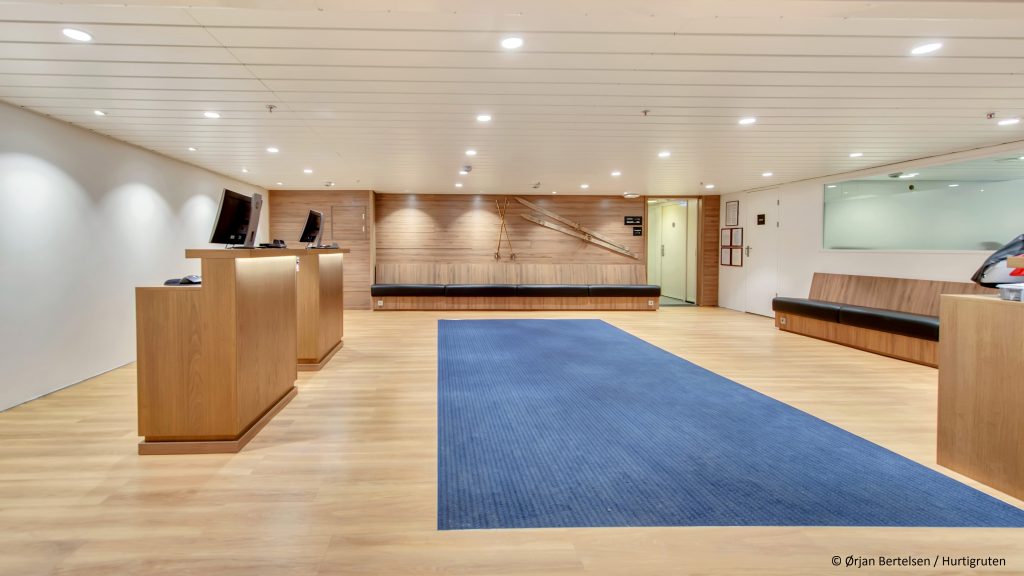 MS Kong Harald ble renovert i 2016 og har i dag et moderne arktisk-inspirert interiør.