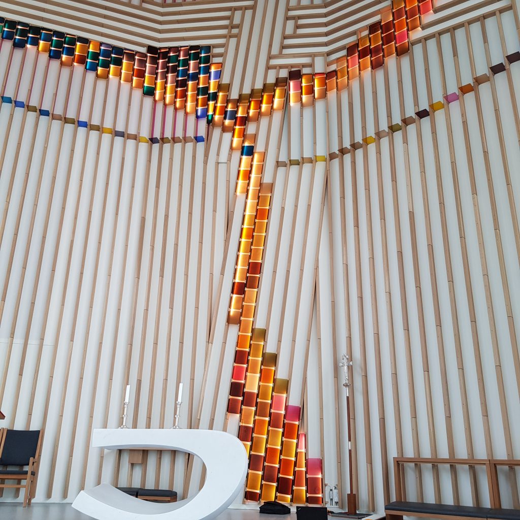 Kreativ bruk av LED-strip i kirke.