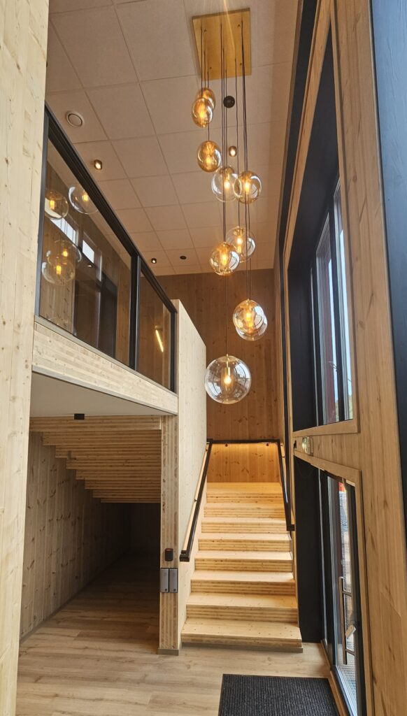 Kontoret ved Verdalsbruket har pusset opp og har i den anledning valgt å gå for spennende belysningsløsninger.